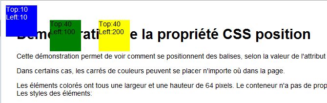 Ainsi si l'on définit: left:100px, la balise sera décalée de 100 pixels par rapport au conteneur si c'est la première balise dans le conteneur, ou décalée de 100 pixels par rapport à l'élément précédent sinon.