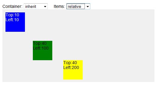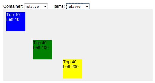 Thus if we define: left: 100px, the tag will be offset 100 pixels from the container if this is the first tag in the container, or 100 pixels at the right of the previous element otherwise.