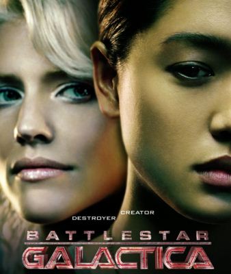 On a pour image initiale une affiche de la série télévisée Battlestar Galactica qui montre deux actrices dont on veut voir une photo.